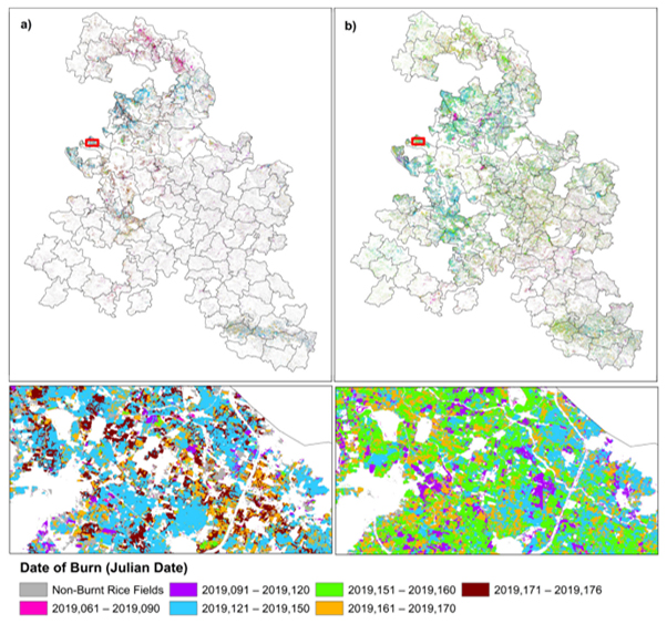 Geospatial Analysis of Crop Residue Burn Areas and Their Dates for Emission Mitigation Strategies